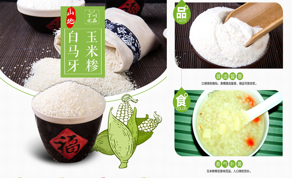 白马牙此产品由被当地农民俗称为“白马牙”玉米制作而成,因谷穗硕大,籽粒像骏马的牙齿一样,饱满、圆润、洁白,而被称为“白马牙”玉米,是北方玉米的代表。产自海拔600米以上大山深处,是当地农民四五十年代种植的传统品种,产量极低,因山区昼夜温差大,生长期为180天以上。该产品含多种维生素和矿物质,且亚油酸含量较高,是老少皆宜的上乘食品。 白马牙粥做法:水大火烧开,把玉米糁均匀的撒入锅内,边撒边搅匀,中小火熬煮30分钟以上。白玉米粥味道香浓,口感润滑,便于消化,是脾胃虚弱老人、儿童的食疗佳品。